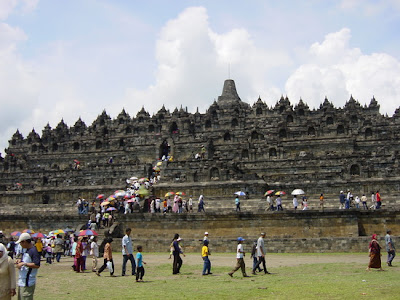 Candi Borobudur is made by adherents of Buddhism in 800 AD. In the reign of the dynasty dynasty. This candi has 1460 relief panels and 504 Buddha effigies. Candi Borobudur has a staircase shape punden, which consists of six levels of a square, three levels of a circular and a main stupa as a peak. Also scattered in all levels several stupas. Each level represents the stages of human life.